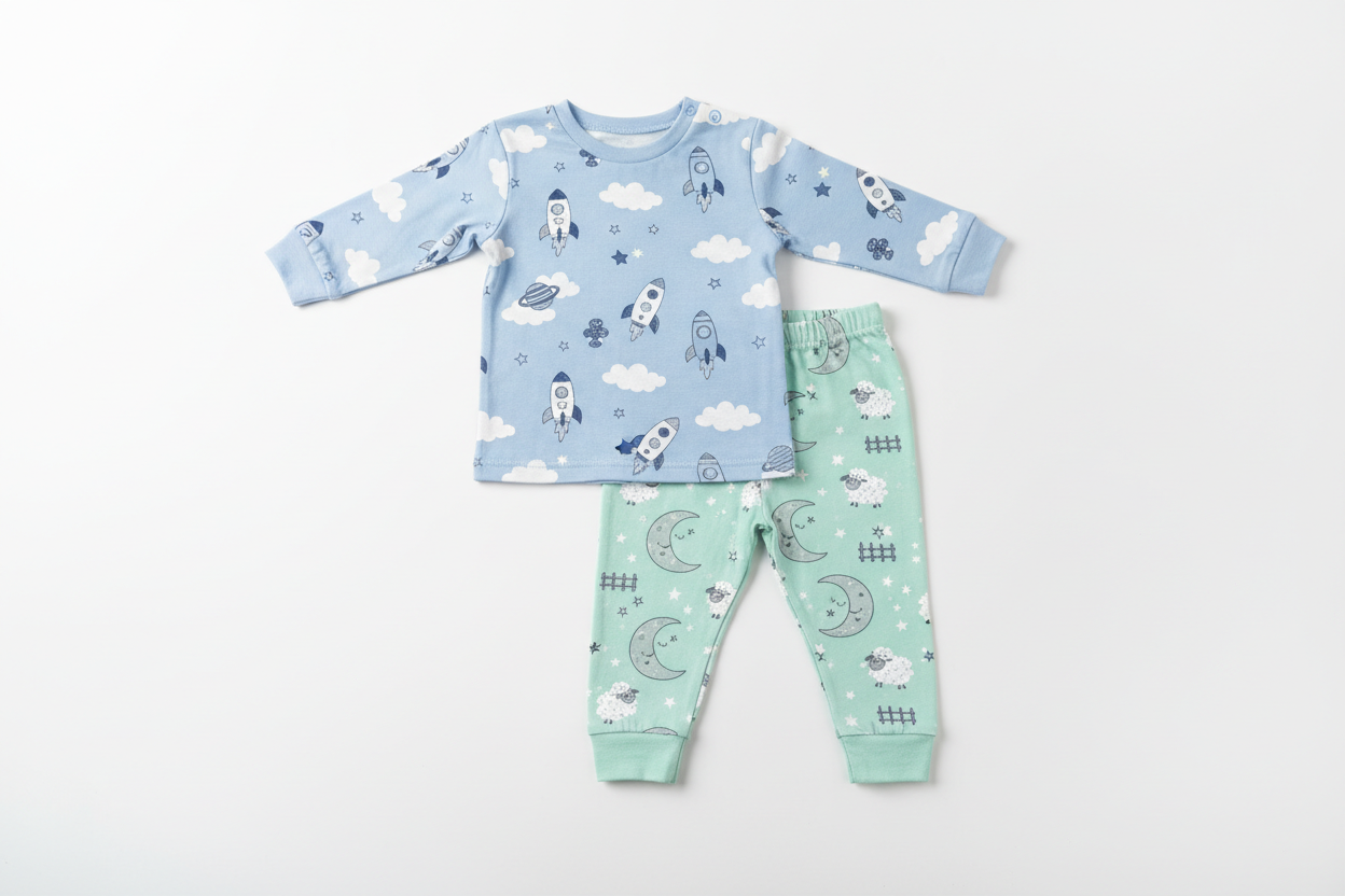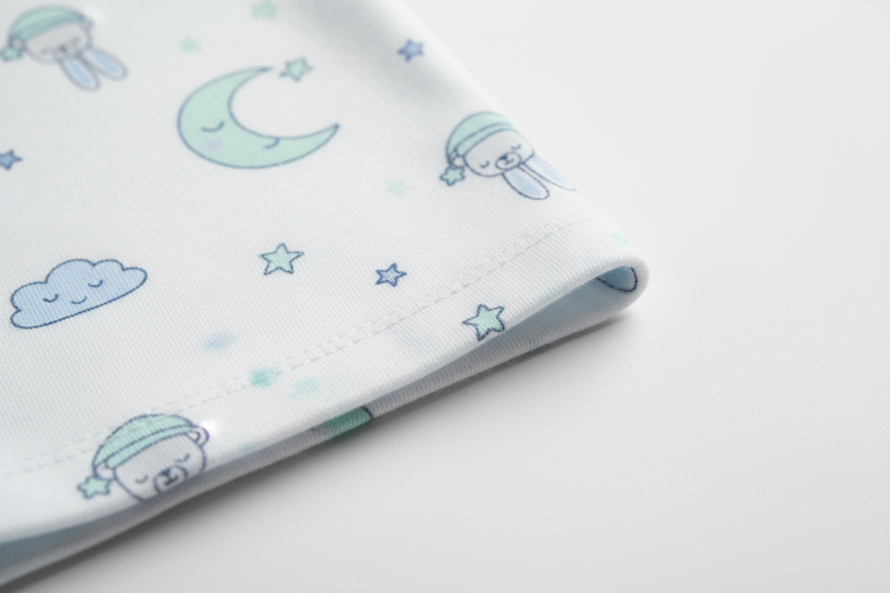 Ensure peaceful nights for your little one with our adorable printed night suit set. Featuring charming prints in soft baby colors of sky blue, mint, and cream, this premium pajama set combines comfort with delightful style for bedtime.