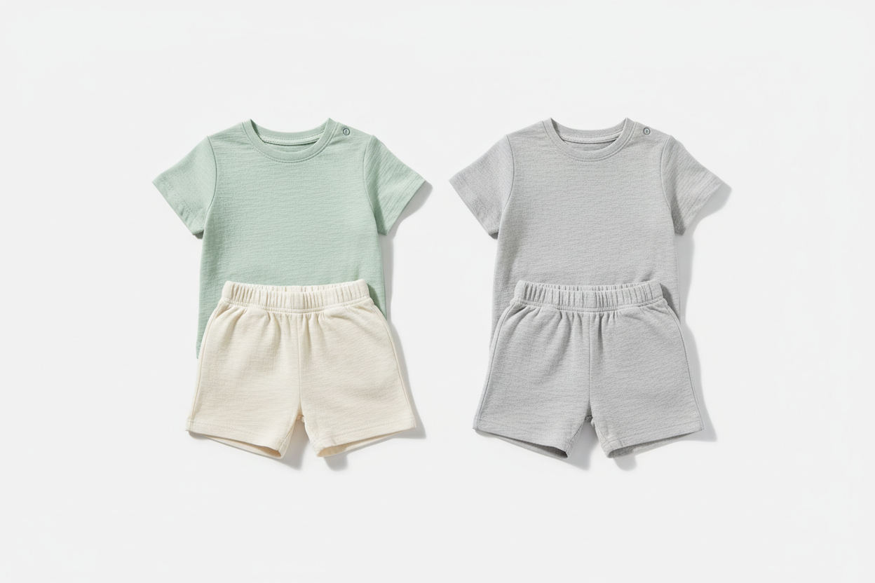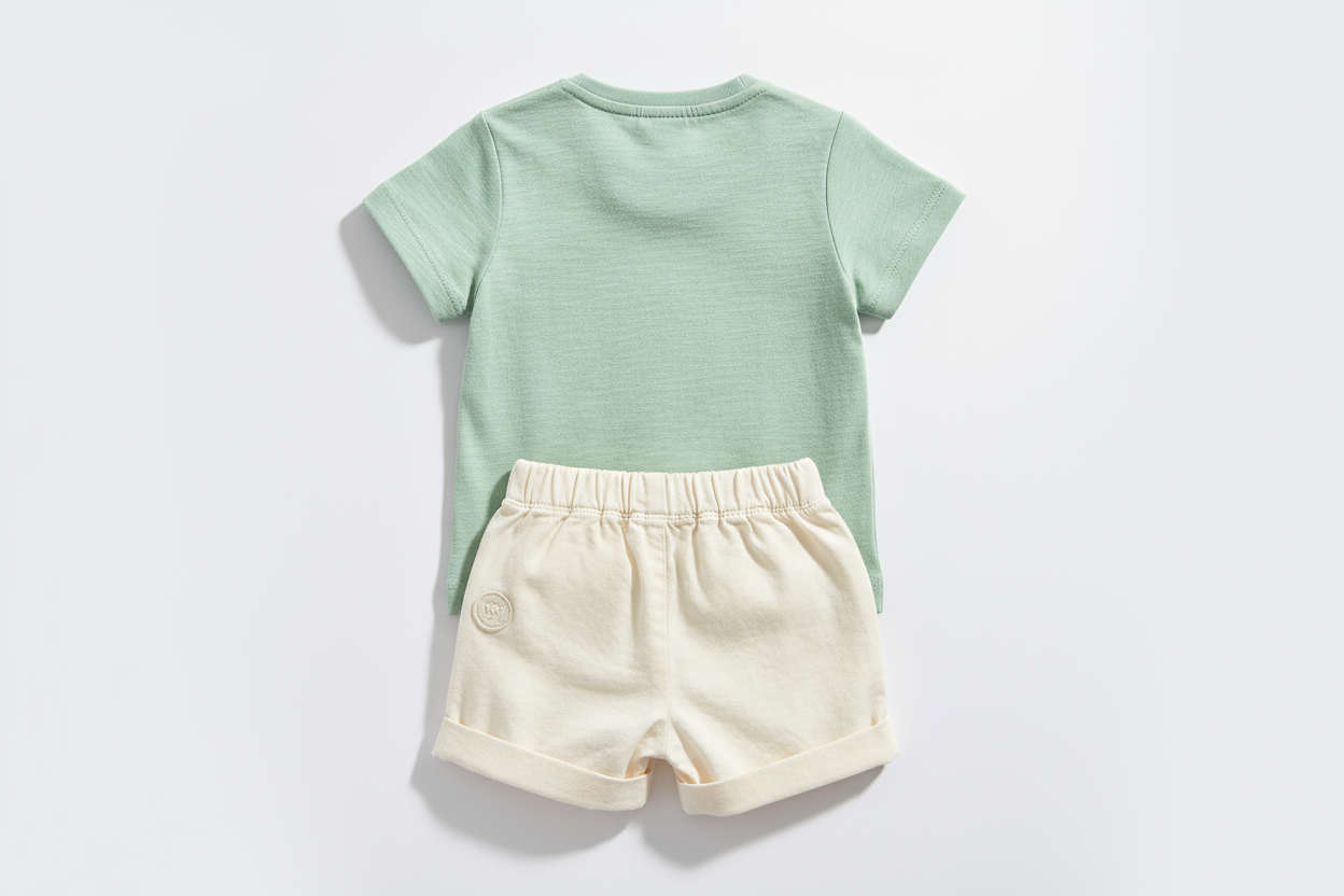 Create adorable combinations by mixing and matching colors! Pair the pastel green t-shirt with cream shorts, or the light grey tee with any bottom. Perfect for playdates, beach trips, park outings, or casual family gatherings.