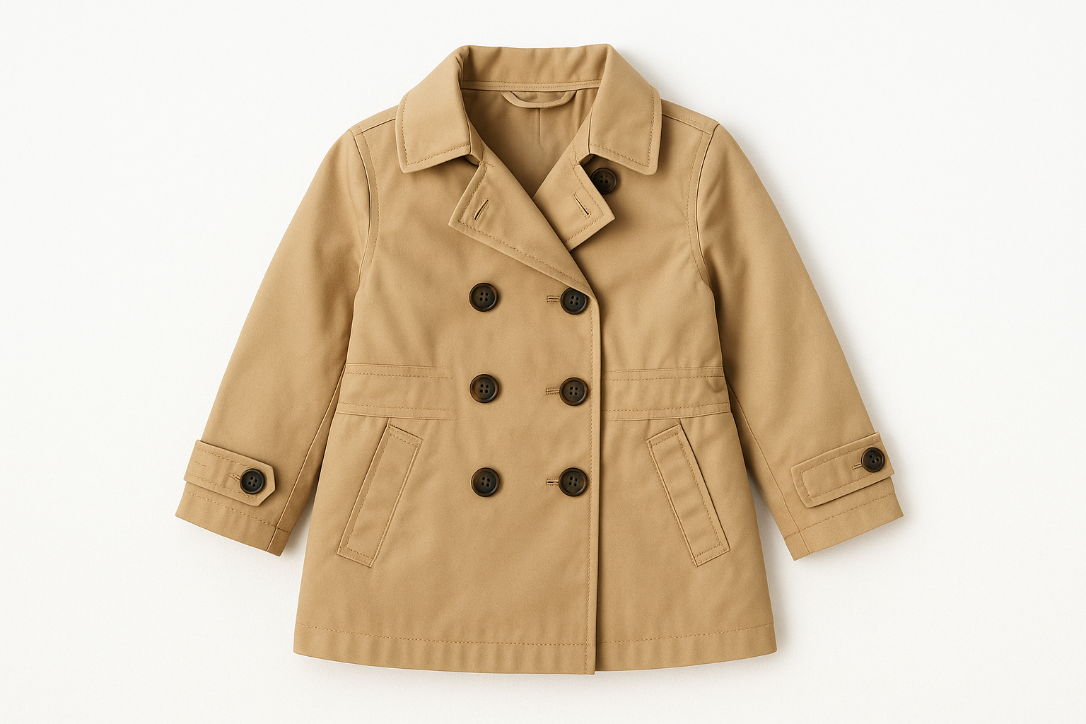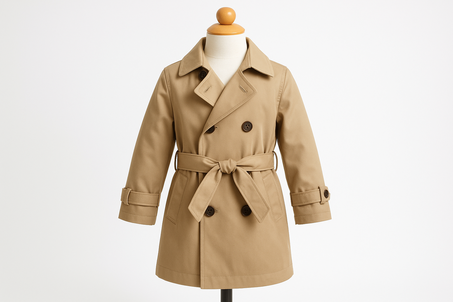 Dress your little one in timeless elegance with this adorable kids' trench coat! Featuring classic double-breasted styling and a sophisticated beige color, this coat brings grown-up fashion to children's wardrobes.