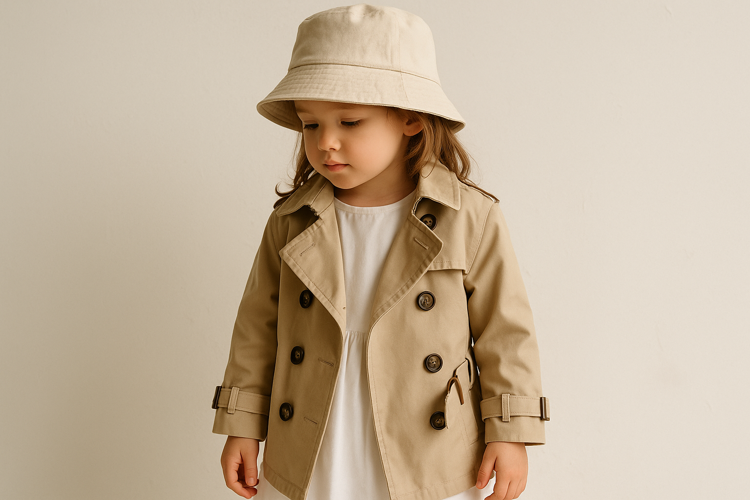 This charming trench coat is a wardrobe essential that brings sophistication to any kids' outfit. Whether it's for a special event, family gathering, or just adding a touch of elegance to everyday wear, this coat delivers timeless style. The classic design means it never goes out of fashion, making it a smart investment piece that can be passed down or treasured for years. Perfect for creating those picture-perfect moments!