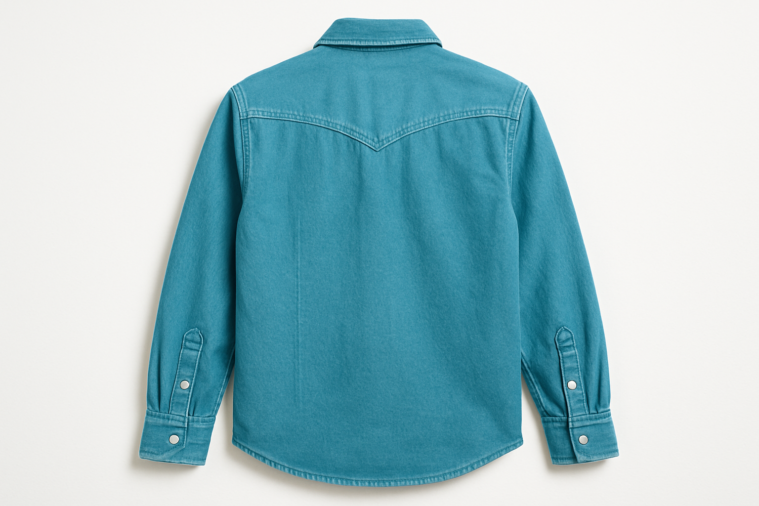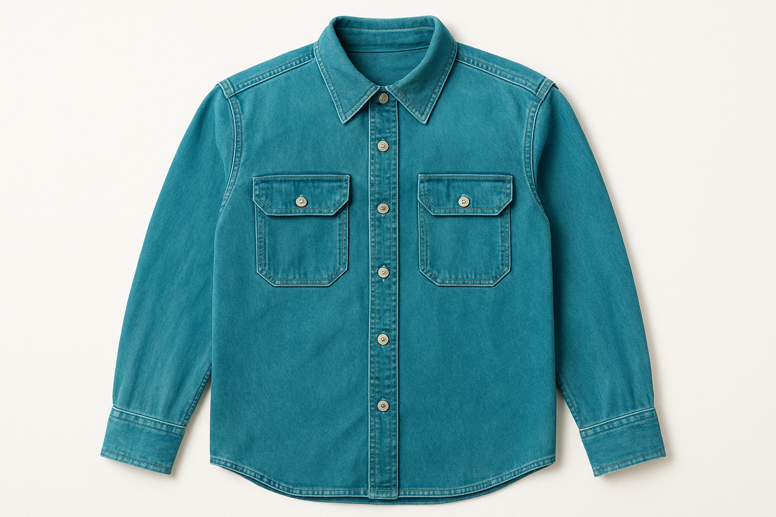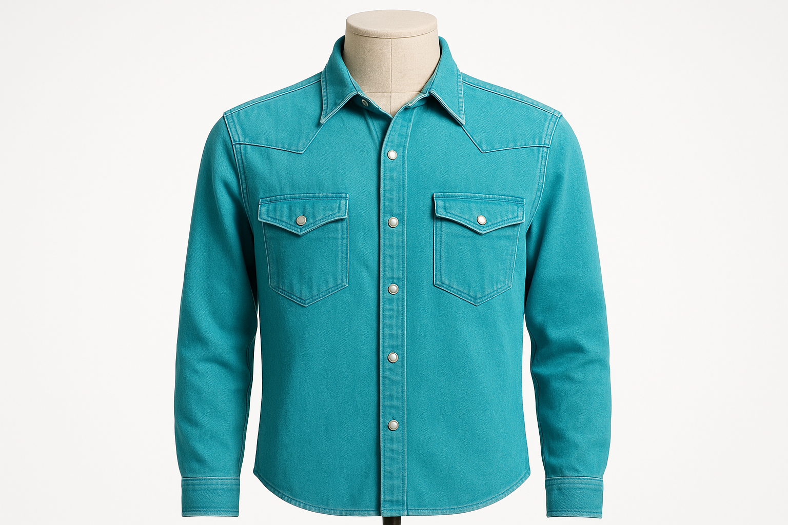 • Vibrant turquoise color: Fresh, modern take on the classic denim shirt with a striking teal-blue hue