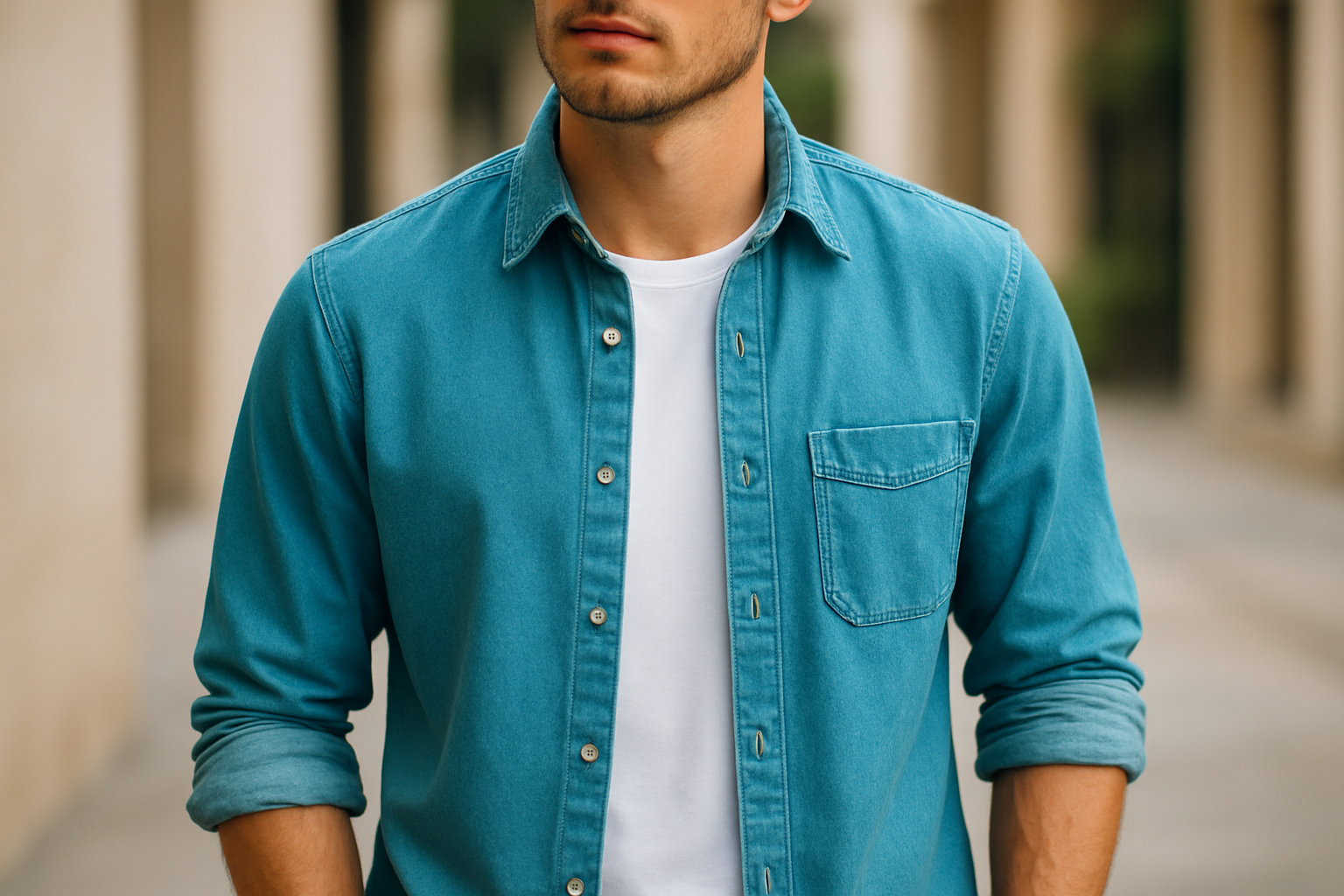 Men's Turquoise Denim Shirt - Classic Fit Button-Down
